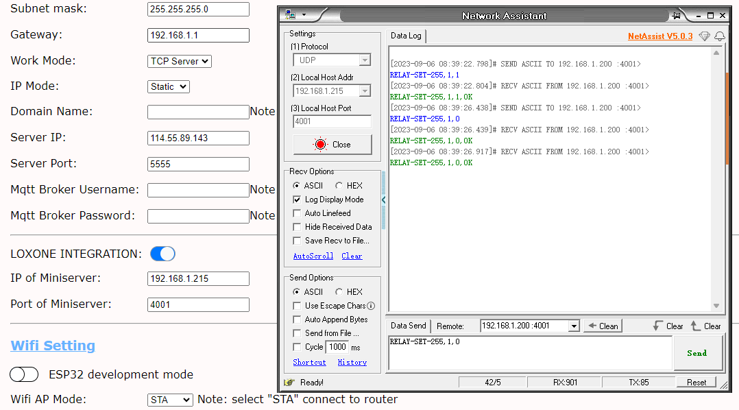support control relay by UDP command in Loxone Miniserver