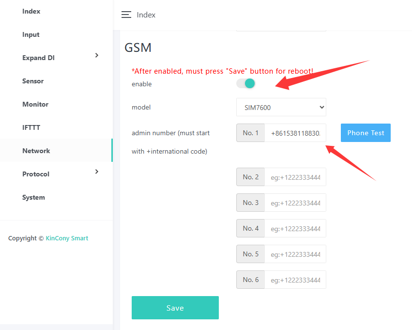 this step is important, must need enable 4G module, set the admin's mobile phone number.