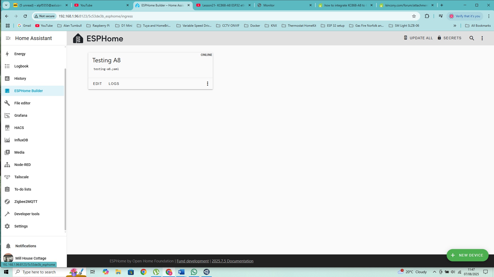 I have tried I think everything except the right thing but I do not know what that is I am hoping that you will be able to help me I have also attached a screen shot of the Esp Home Page below