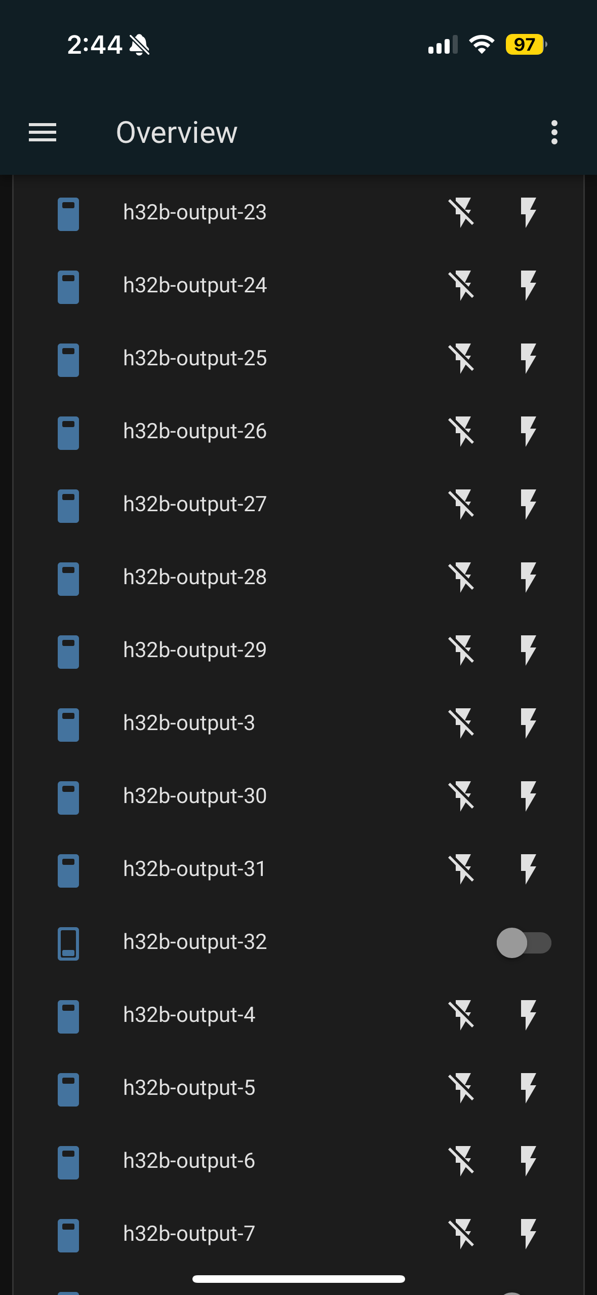 I just started using two H32B Pro. After a few days, on one of the boards, switches 13 and 14 are dead: when I open/close them in the web interface, there is no clicking sound from the board... and they remain closed. The small red LED light is ok, it turns on when I activate the switch. Also, all the other switches are ok.