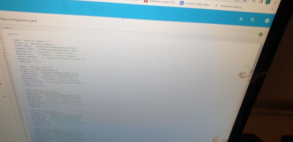 Online Store: https://shop.kincony.com Alibaba Store: https://kincony.en.alibaba.com/ (02-10-2023, 10:40 PM)Admin Wrote: jūsų state_topic ir command_topic yra neteisingi.Kai perkraunu namo asistentas meta stalą, kas galėtų būti (02-12-2023, 03:45 PM)Eligijus Wrote:(02-10-2023, 10:40 PM)Admin Wrote: jūsų state_topic ir command_topic yra neteisingi.Kai perkraunu namo asistentas meta stalą, kas galėtų būti (02-12-2023, 03:45 PM)Eligijus Wrote:(02-10-2023, 10:40 PM)Admin Wrote: jūsų state_topic ir command_topic yra neteisingi.Kai perkraunu namo asistentas meta stalą, kas galėtų būti