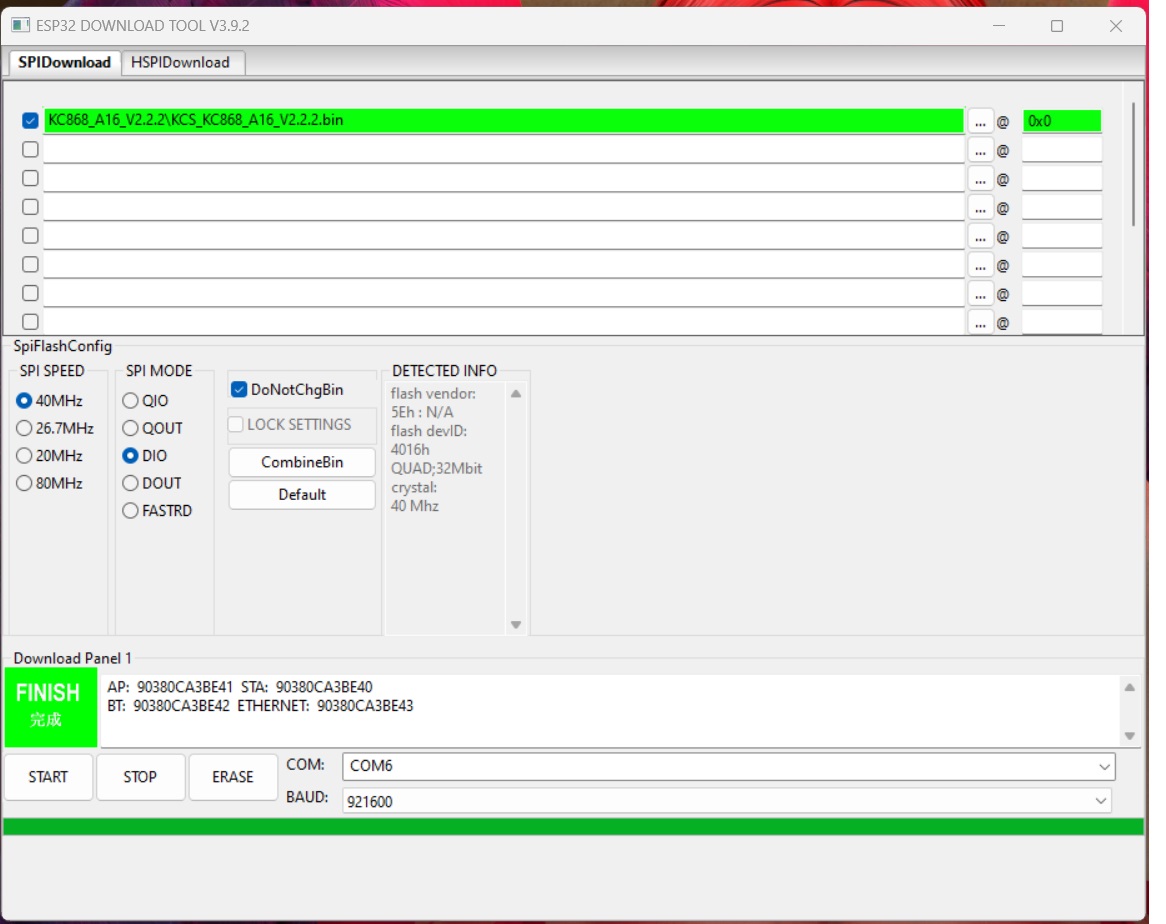 After flashing my A16 with ESPHOME it will no longer flash KCS firmware v2.2.2.
