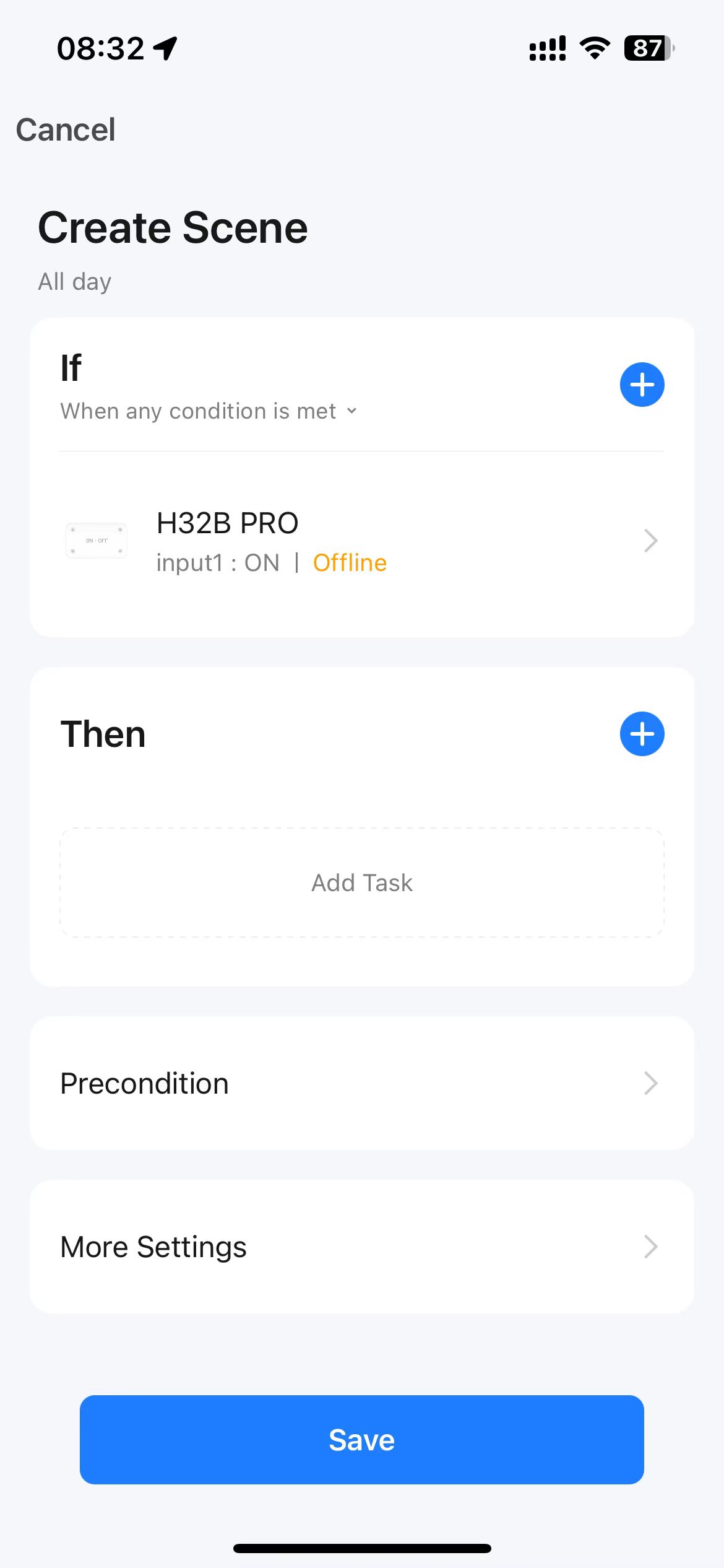 KC868-Ax - Attivazione NOTIFICHE su TUYA SMART LIFE - Pask media_king - 01-02-2024 Saluti a tutti e auguri. Sono nuovo del forum e chiedo aiuto per attivare le notifiche della variazione degli ingressi su una KC868-A4 con licenza TUYA. Puoi aiutarmi gentilmente? Grazie in anticipo a tutti coloro che risponderanno. RE: KC868-Ax - Attivazione NOTIFICHE su TUYA SMART LIFE - admin - 01-02-2024 please write your question in English, now i don't know what's your problem? RE: KC868-Ax - Attivazione NOTIFICHE su TUYA SMART LIFE - Pask media_king - 01-02-2024 Greetings to everyone and best wishes for a happy 2024. I'm new to the forum and I ask for help to activate the notifications of the INPUT change on the card a KC868-A4 with TUYA license and SMART LIFE APP. Can you kindly help me? Thanks in advance to everyone who will respond. RE: KC868-Ax - Attivazione NOTIFICHE su TUYA SMART LIFE - admin - 01-03-2024 1. download KCS firmware to ENABLE tuya prtocol by tuya license, here is online guide: https://www.kincony.com/esp32-kcsv2-firmware.html 2. create SCENE mode in smart-life APP, "When device status changes", Add task by "Send notification" --"Message Notification" . RE: KC868-Ax - Attivazione NOTIFICHE su TUYA SMART LIFE - Lucas35 - 02-22-2024 (01-03-2024, 12:37 AM)admin Wrote: 1. download KCS firmware to ENABLE tuya prtocol by tuya license, here is online guide: https://www.kincony.com/esp32-kcsv2-firmware.html The link doesn't work for me it says it's not available in my region can you fix that? RE: KC868-Ax - Attivazione NOTIFICHE su TUYA SMART LIFE - admin - 02-23-2024 which link can't use? |