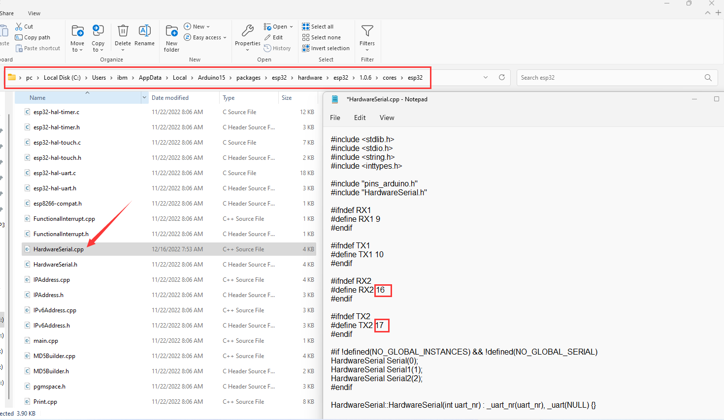 see this photo, open your config file, replace pin number of RXD2,TXD2.