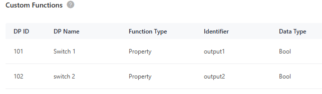 Then i go to log on tuya side and found that ESP report not by ID number, it report by ID name (identifier). ESP send ID "output1" and "output2".