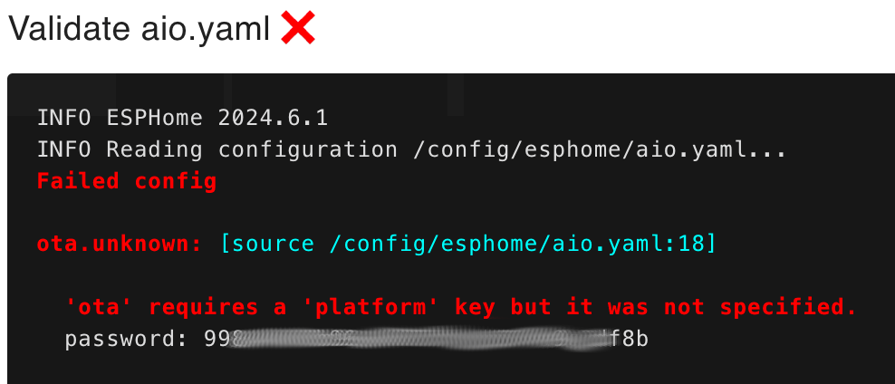 Some further info on the ESPhome update failure if this helps with resolving the error: