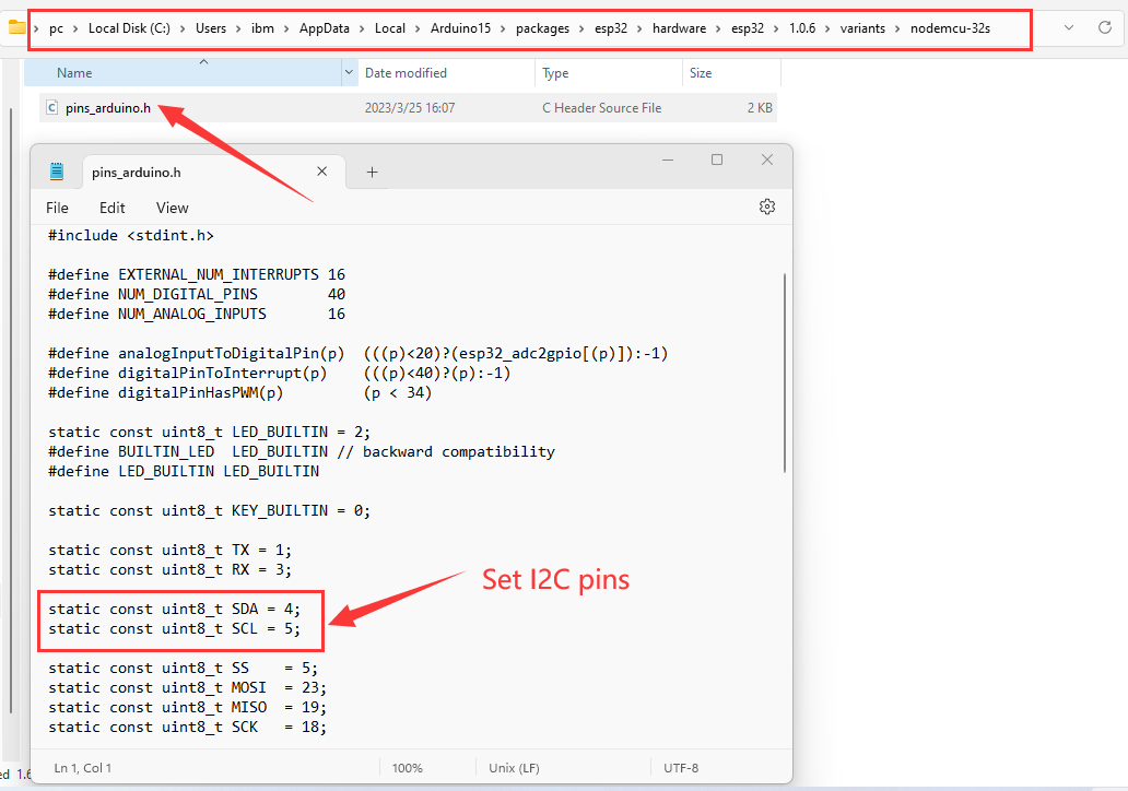 It means that I don't need to define SDA & SCL in my sketch, correct?? yes, just define in "pins_arduino.h".