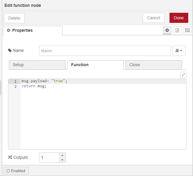 msg.payload= "true";