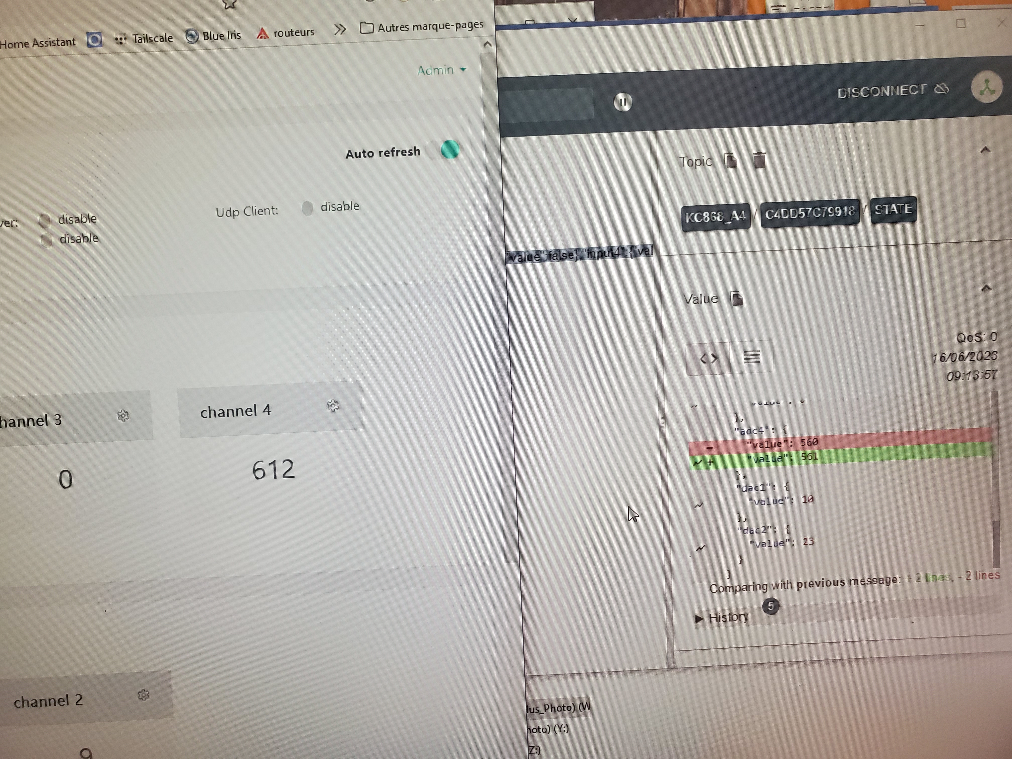 If only an analogic input changes, there is no mqtt frame being sent. This is what one of my pictures shows.