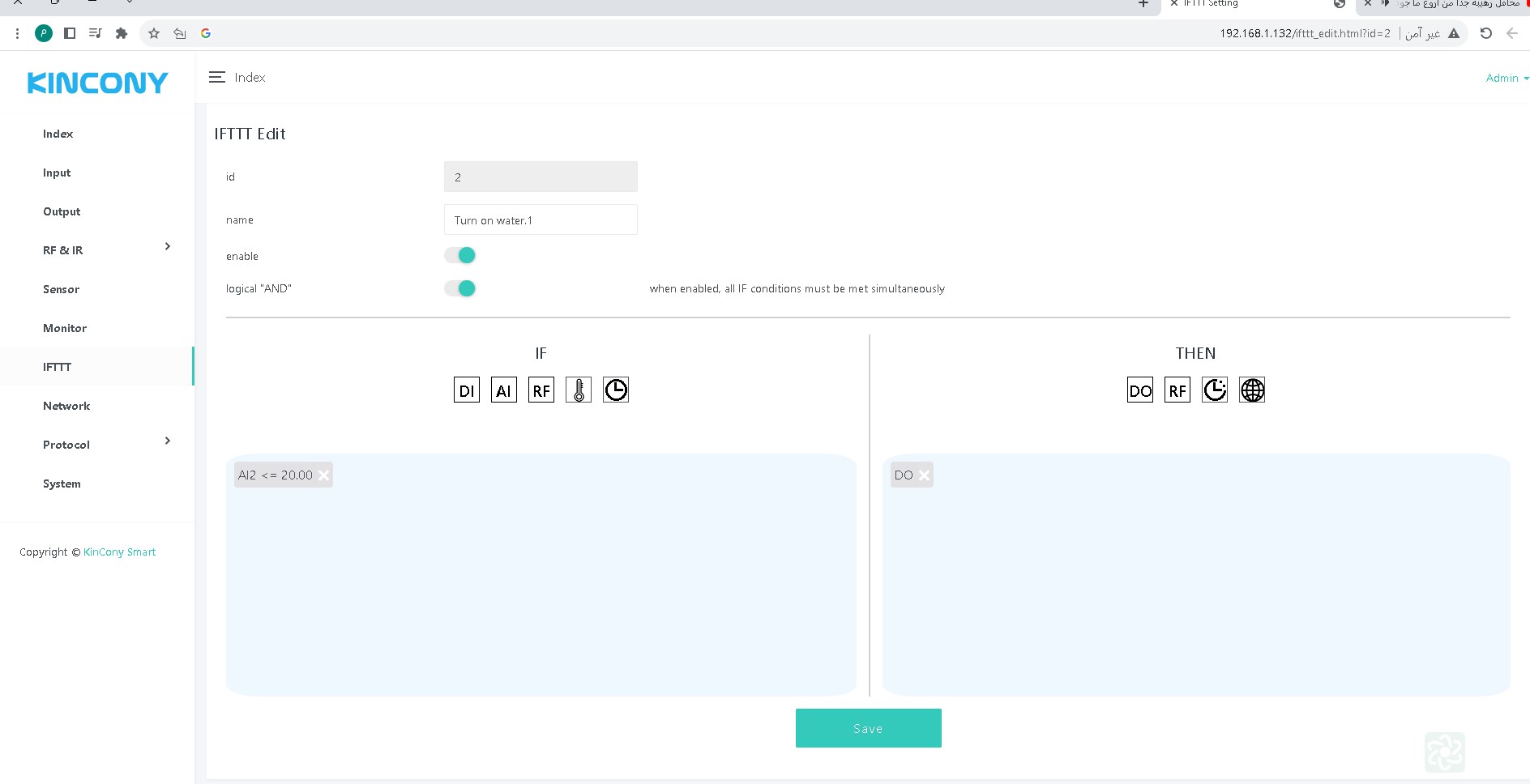 It only responds to the automation for turn on KC868-A8 relays at a certain value, but it does not respond to the automation to turn off the A8 relays when the tank is filled.