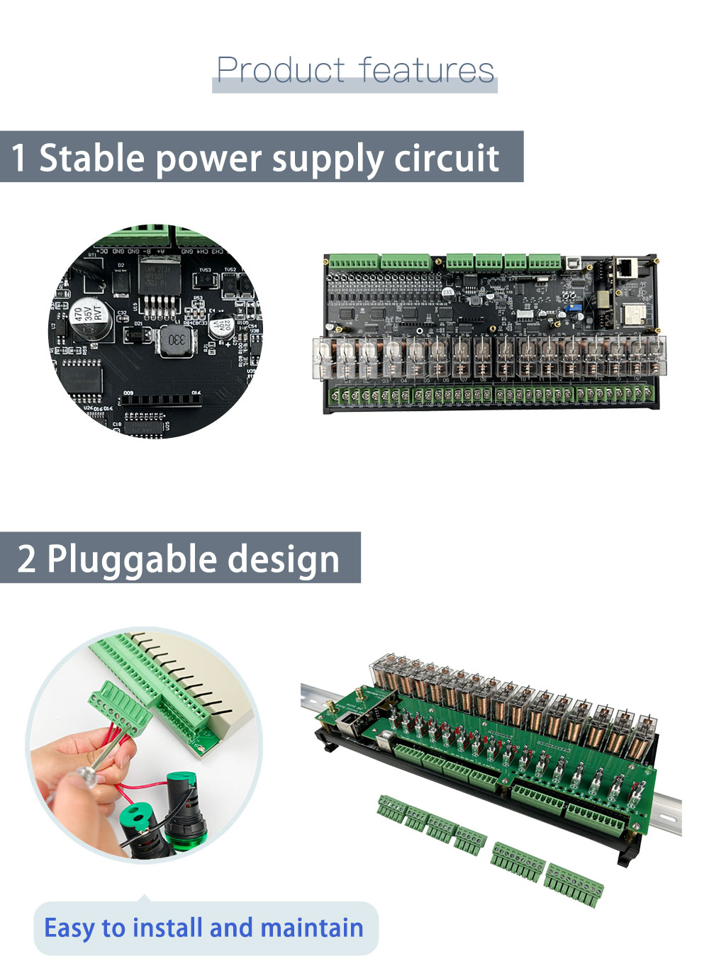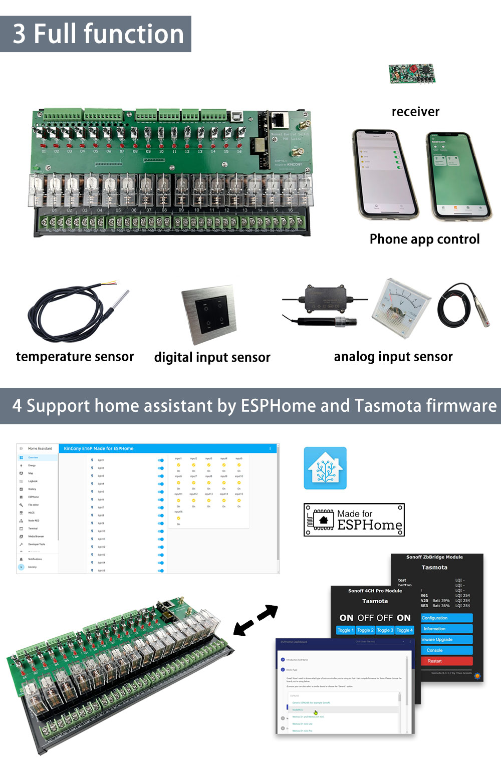 we have designed KC868-E16P ESP32 home automation extend relay module. PCB with manual control buttons. it’s based on ESP32 , Ethernet POE + RS485 + 4CH analog input + 16CH digital input and 16CH digital output by 16A OMRON relay. Support ESPHome for home assistant and Tasmota firmware and “KCS: tuya app for home automation DIY.