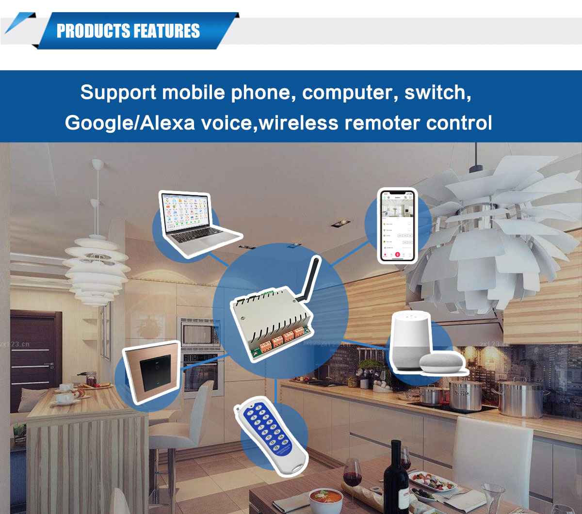 iPhone, Android phone, PC, wireless remoter , wall switch, Google home / Amazon Alexa speaker for voice control.