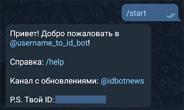 We enter the command “/start” and get your user ID for further use when programming the bot.