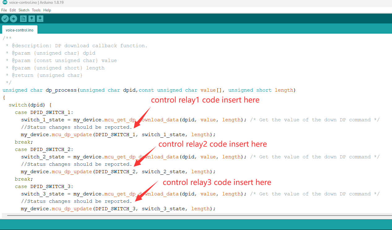 you can modify the arduino source code, let Tuya app 32 buttons control your own relay board (or other RS485 output device) via RS485 port.