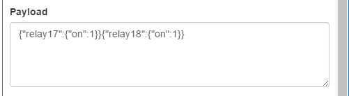 payload_on: '{{"relay17":{"on":1}}{"relay18":{"on":0}}{"relay19":{"on":0}}{"relay20":{"on":1}}{"relay21":{"on":0}}{"relay22":{"on":0}}{"relay24":{"on":1}}}'