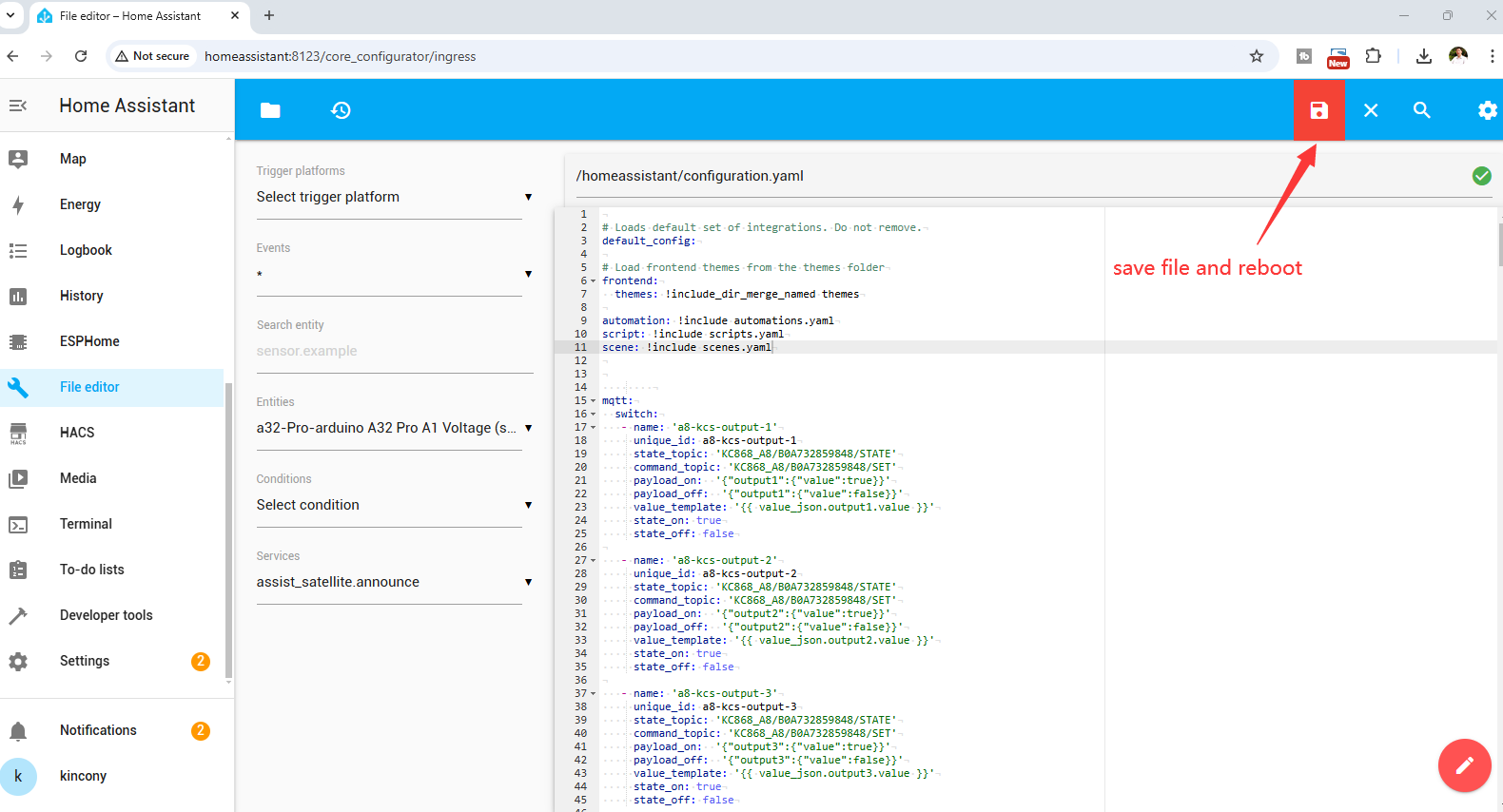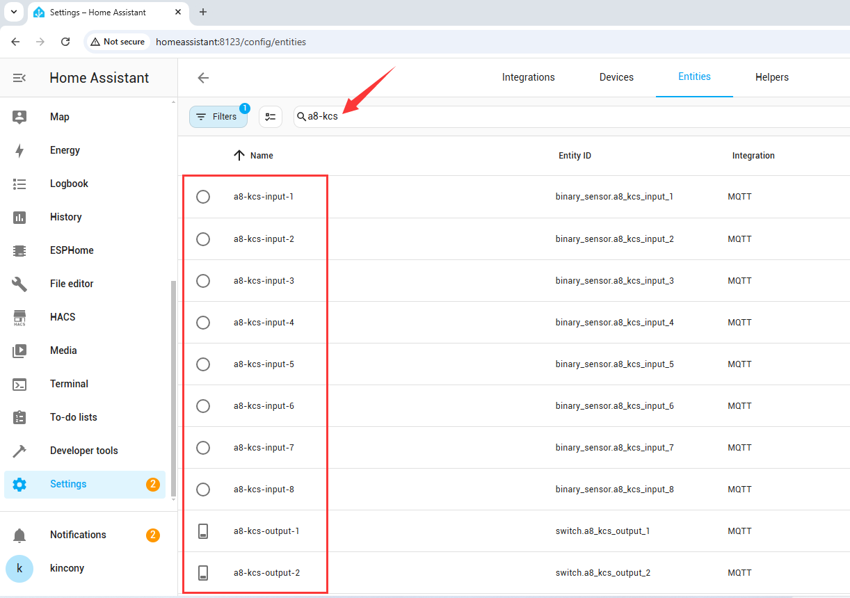 | how to integrate KC868-A8 to home assistant by MQTT | ||||