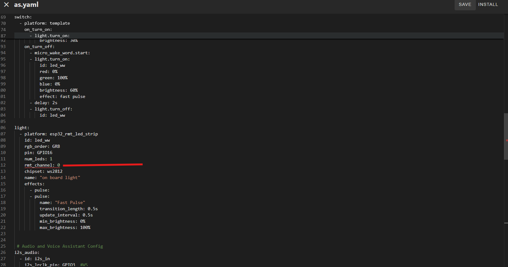 This is the exact yaml file I used. I have to remove the line with error to get install but after installation, 'hey jarvis' doesn't respond ro wake up the device as shown in the pictures attached