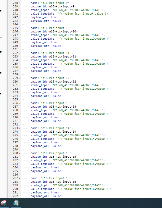 you only need add 16 DO and 16 DI command. The server topic because i have also added KC868-Server, you not need to use. so you need to 16 DO and 16 DI as these format: - name: 'a16-kcs-output-1' unique_id: a16-kcs-output-1 state_topic: 'KC868_A16/B48A0A404560/STATE' replace B48A0A404560 with your boad's ID, you can check in your board webpage. command_topic: 'KC868_A16/B48A0A404560/SET' replace B48A0A404560 with your boad's ID, you can check in your board webpage. payload_on: '{"output1":{"value":true}}' payload_off: '{"output1":{"value":false}}' value_template: '{{ value_json.output1.value }}' state_on: true state_off: false - name: 'a16-kcs-input-1' unique_id: a16-kcs-input-1 state_topic: 'KC868_A16/B48A0A404560/STATE' replace B48A0A404560 with your boad's ID value_template: '{{ value_json.input1.value }}' payload_on: true payload_off: false