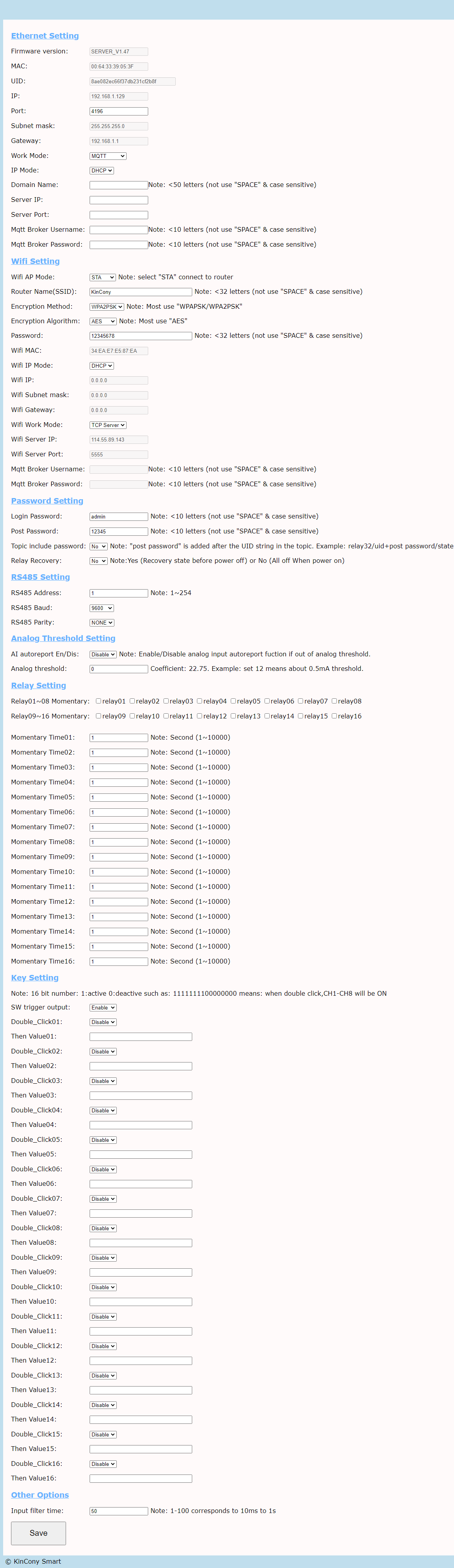 web browser login with your KC868-Server’s IP Address, user and password default all are : admin admin