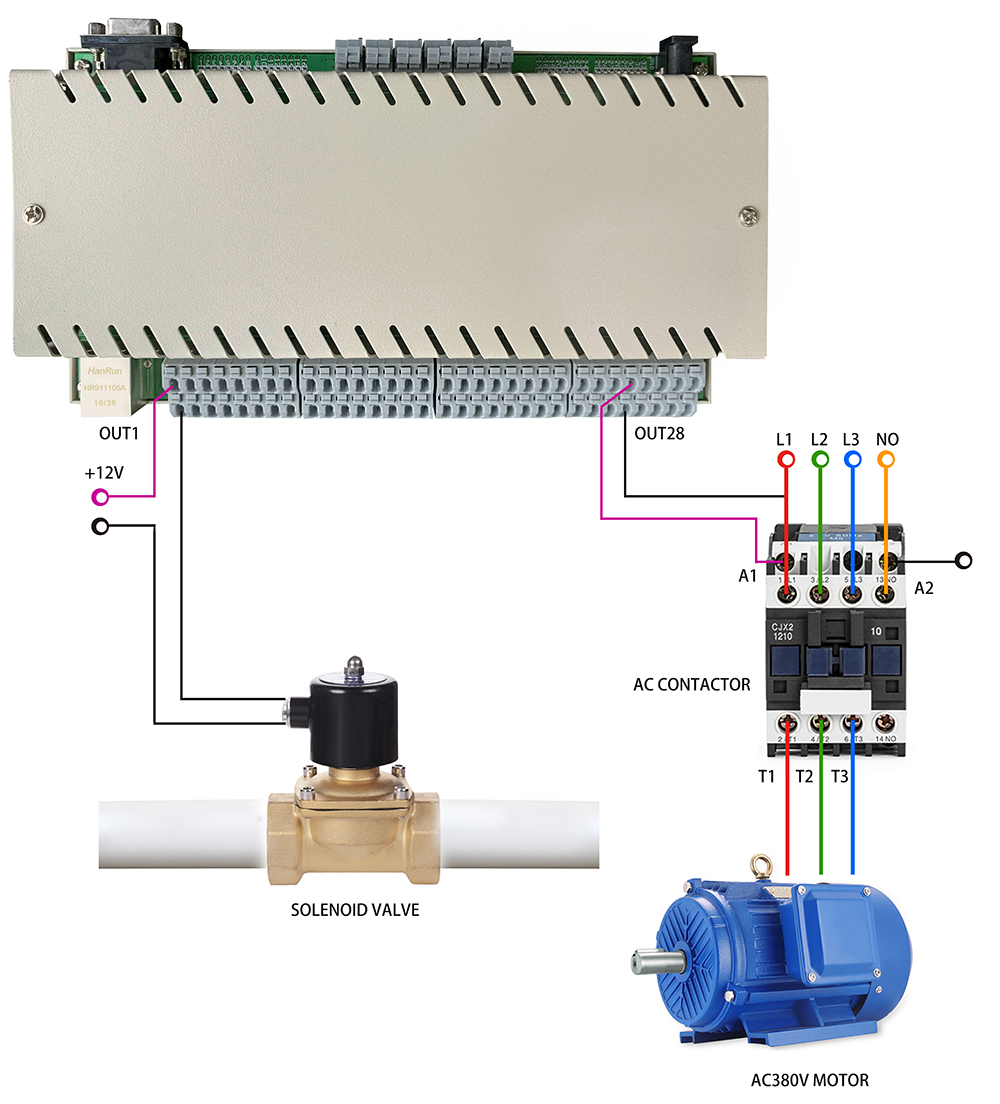 The motor is connected by the AC contactor. The working voltage and current of the motor cannot exceed the rated voltage and current of the AC contactor.