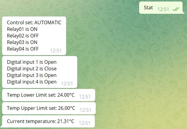 The automatic or manual mode can also be set via the Telegram command: