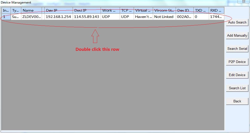 2. After connecting, open the network configuration tool, see below picture and click the “Device” button