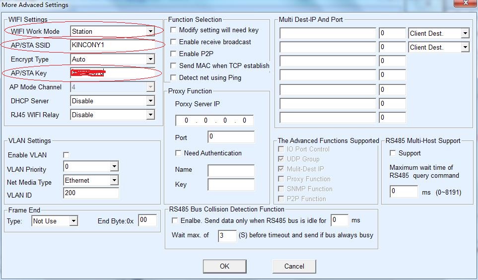 For the WIFI Work Mode, please choose “Station”; for the AP/STA SSID, please input the wireless you are using.