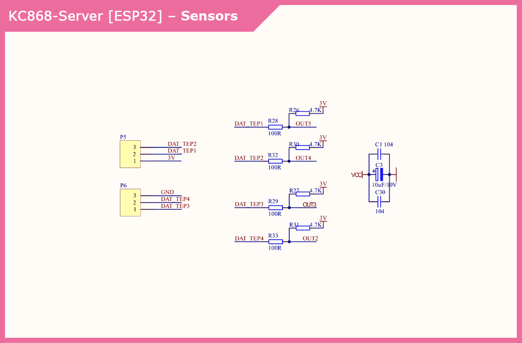 On the contact pad there are 4 GPIO with ESP32 parts of the KC868-Server controller. All these contacts can be used at your request (to connect sensors or other components), you just need to remember that on the board they are already pulled to a voltage of 3 V.