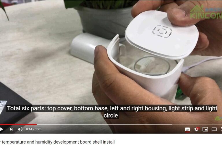 Uair temperature and humidity development board shell install. There are interface of temperature sensor, humidity sensor and PM2.5 sensor on the PCB board (PM2.5 sensor is not standard, pls…