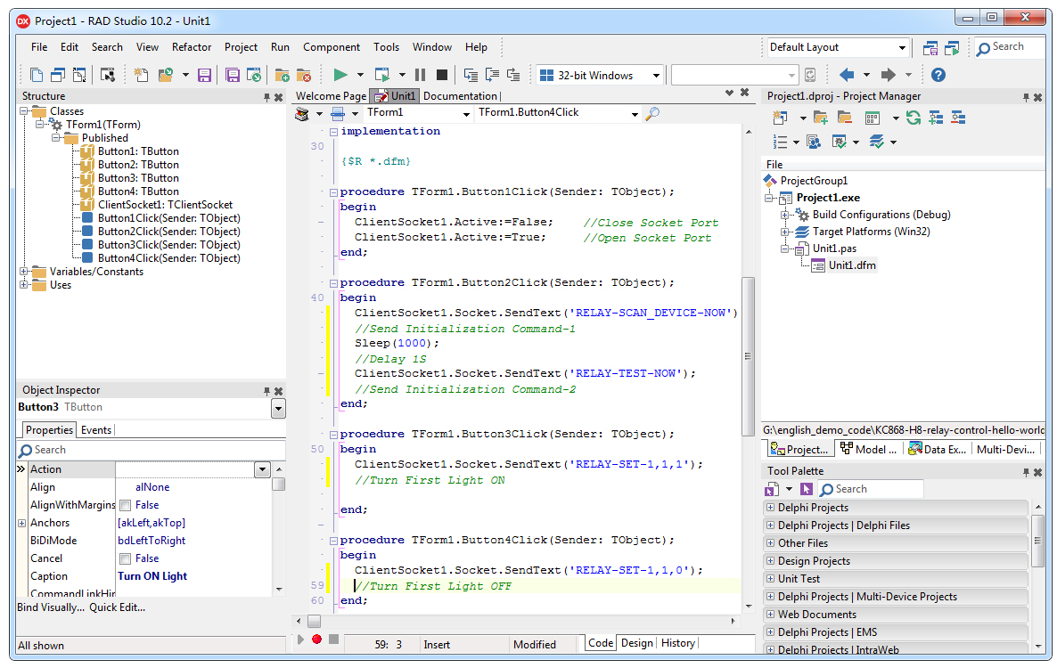 KC868-H8 relay control hello world demo source code delphi.rar (Delphi 10.2.3)