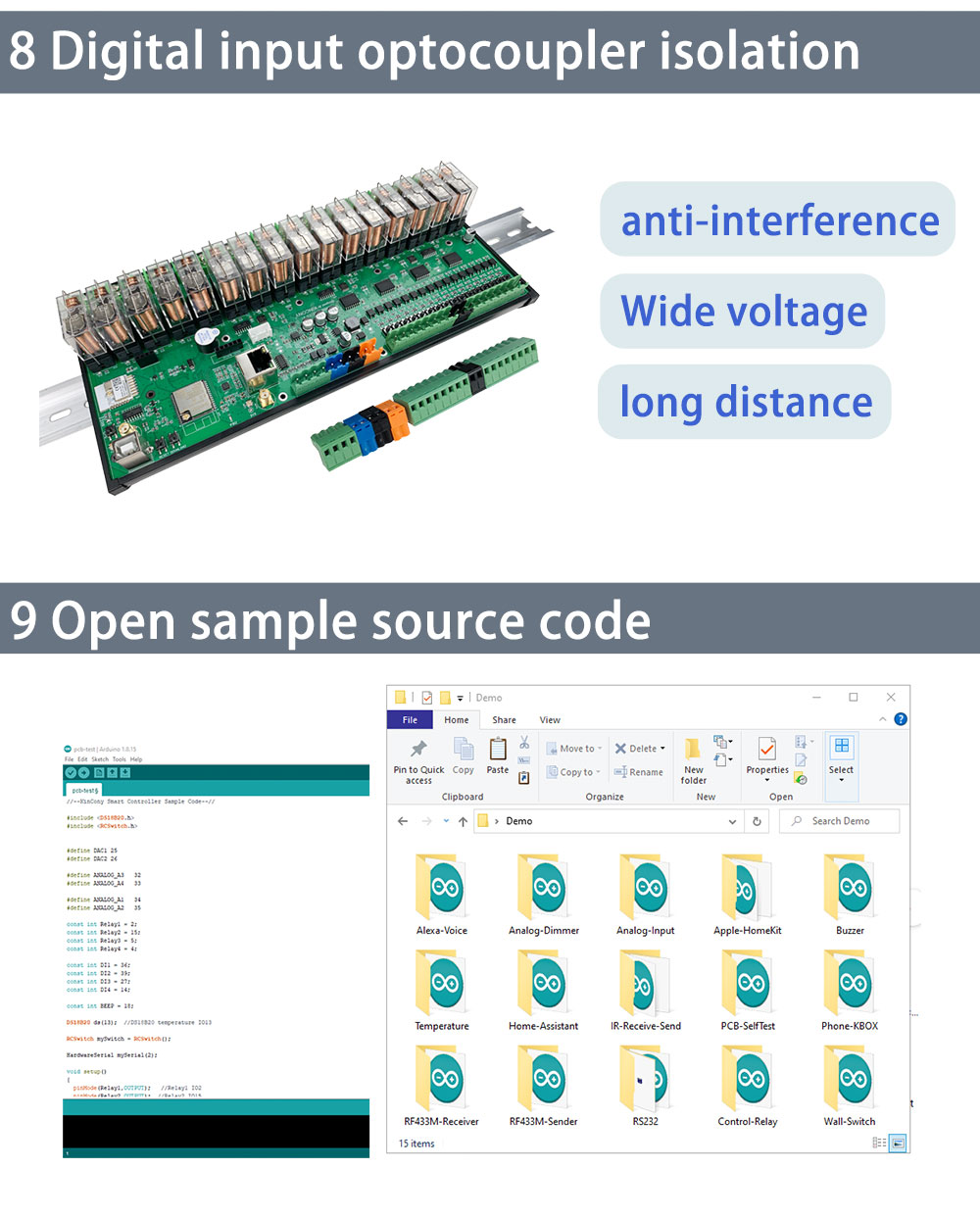 We have designed KC868-E16T with Tuya module and ESP32, the 8 channel removable relay board can work with ESPHome for home assistant, it also can use by Tuya mobile phone application for remote control by internet if you download firmware to ESP32. This board also is open source. you can download schematic diagram from KinCony’s webpage and ardunio IDE demo source code for this board use by Tuya IoT platform.