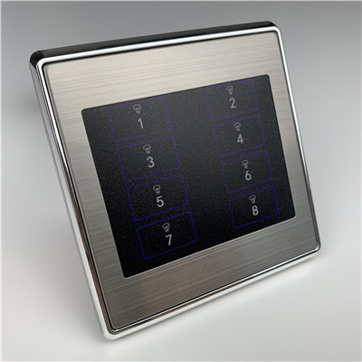 This 8 key wall switch panel support control KC868 smart controller’s 8 relay on one switch panel .